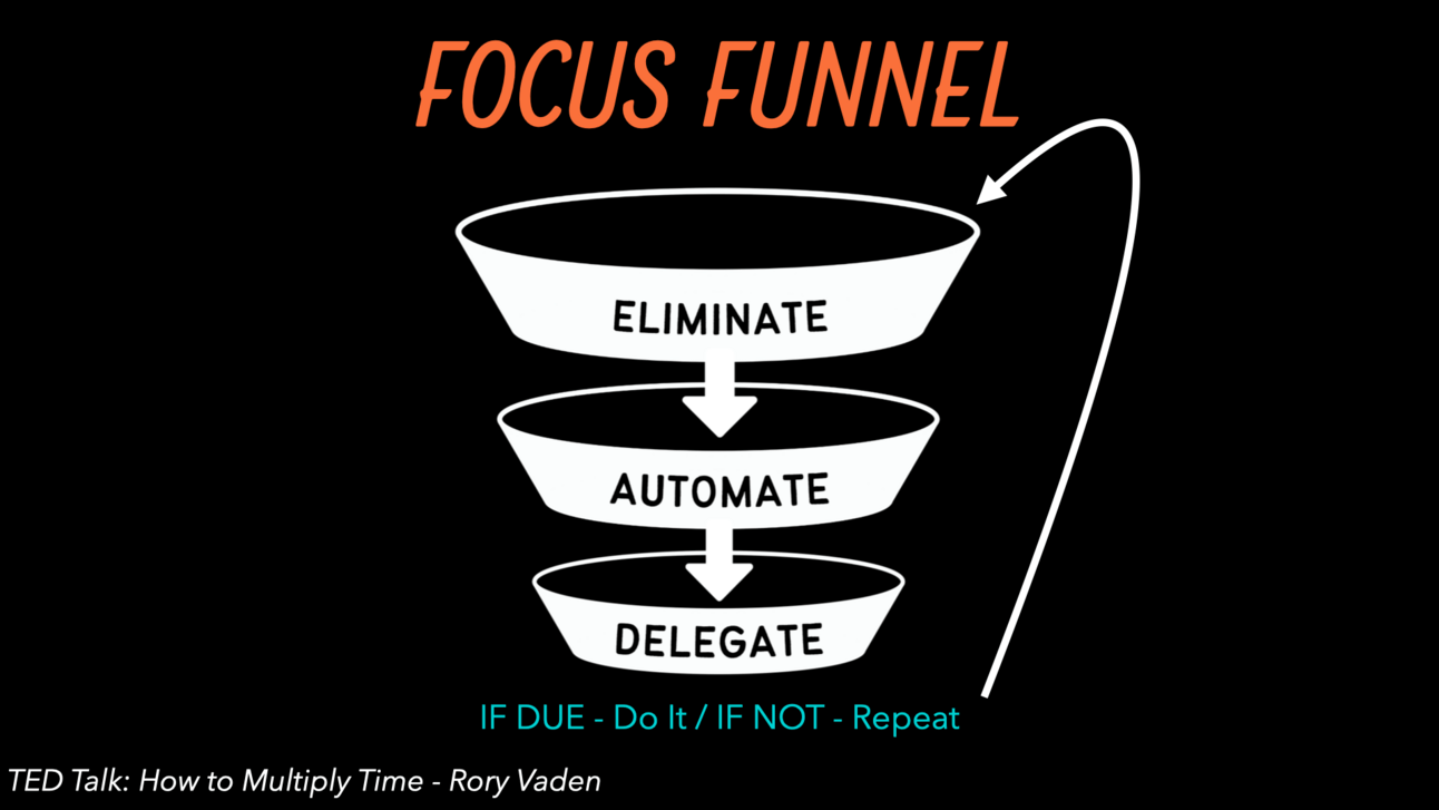 This means that you end up with LESS TASKS than what you started with! This multiplies time to your future self. If something takes you 5 minutes to do a day, but the Focus Funnel catches it, you now have saved 5 minutes a day for the rest of your life!